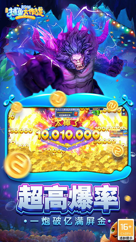 丰富多样道具,助你轻松完爆大boss,无敌狂暴千炮倍率多种炮台任君选择,多种特效鱼狂送无限金币。