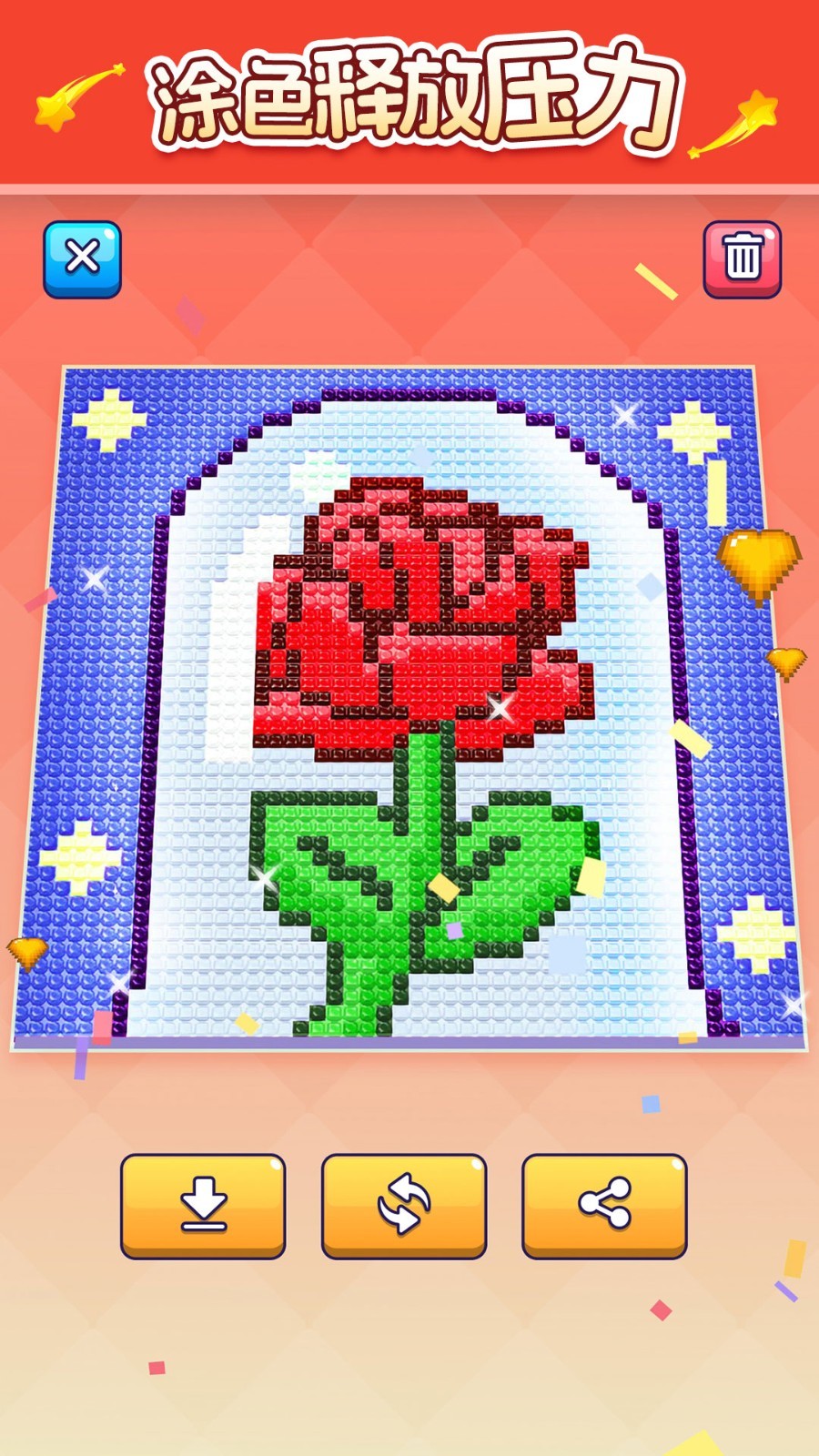 像素涂色应用通过创新的宝石效果与社交功能完美结合,既保留了数字绘画的创意乐趣,又增添了材质表现的视觉惊喜,是艺术爱好者与休闲玩家都不容错过的精品之作。