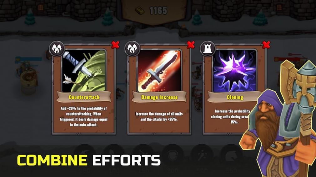 2.挑战竞技关卡,解锁法术库,升级魔力,策略布局;