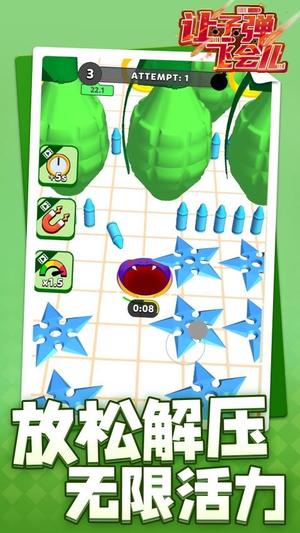 让子弹飞会儿是比较不错的一款休闲益智类的手游。相信玩过让子弹飞会儿的玩家,都会觉得这款游戏非常不错。目前的版本是v1.1.1,解决了不少的游戏bug,让游戏可以更稳定运行。为什么选让子弹飞会儿这款游戏?因为它注重用户的体验。