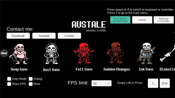 传说之下三重审判2025最新安卓版为玩家呈现以传说之下为主题的战斗冒险玩法,所有角色与boss都得到了原汁原味的还原,玩家可以随心所欲地挑选挑战对象。而且,游戏内所有菜单均已解锁,玩家能够自由选择心仪的难度,通过指尖灵活操作来移动与躲避,避开一切袭击,开启一场场永无止境的战斗。